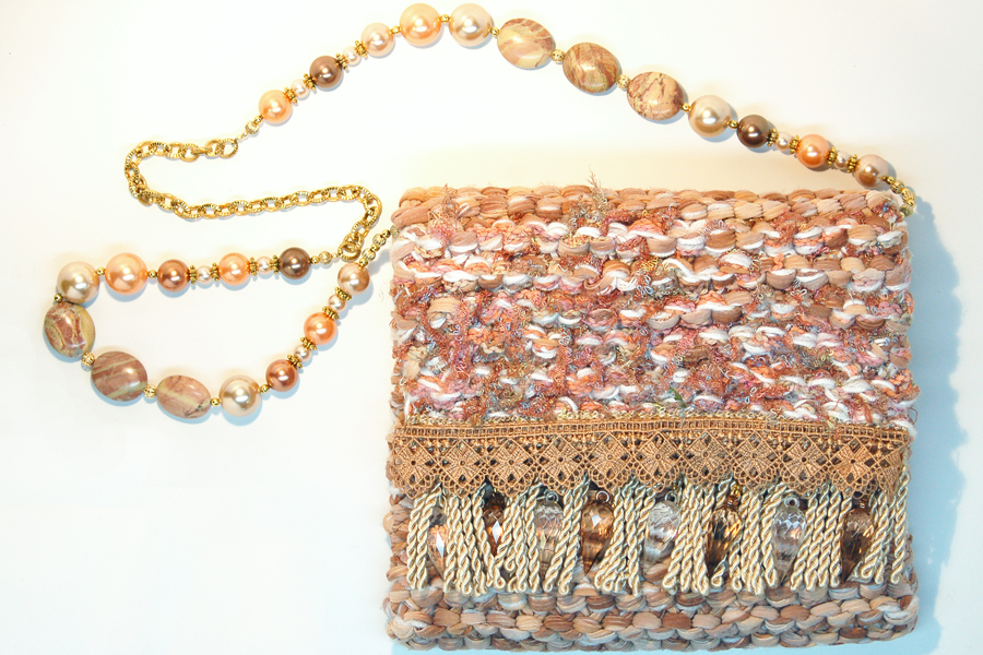 constructed of a beige braided trim,