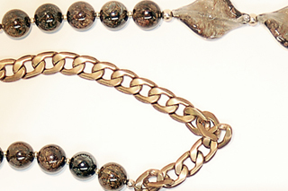 twisted glass beads, as well as polished brown variegated stone beads. A