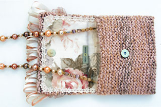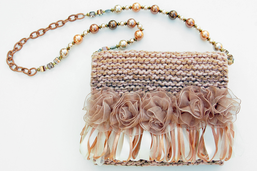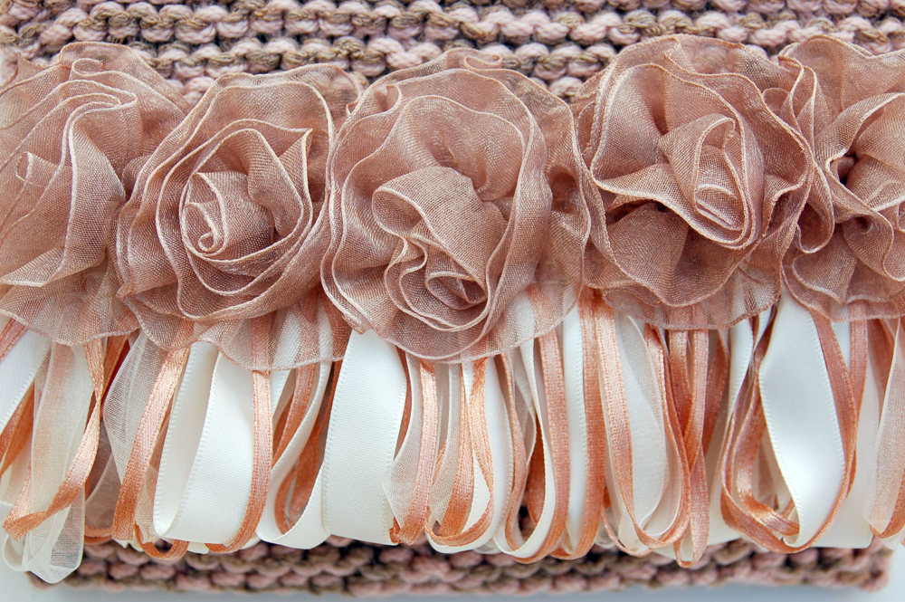 Although this bag has been sold, I can create one for you that will be in keeping with it's original design. However, no two designs are identical and every bag is original, and unique, and therefore won't be duplicated exactly. Please email me and we can talk about what you'd like to have that's similar to this design.Rose Taupe measures 7"W X 6"H. In beautiful shades of rose, peach and taupe, this purse brings a softness to any ensemble. It is created with a multi-colored yarn in pinks, camels and taupe. The embellishment on the top flap consists of a bottom row of a delicately feminine peach and ivory ruffle. The ruffle is topped with sheer rose-colored organza flowers, adding that extra touch of femininity to an already luscious purse.The inside is lined with two fabrics that not only complement each other but that work perfectly with the outside of the purse. The fabrics are a muted print and plaid in watered down colors of peach, ivory and taupe. |